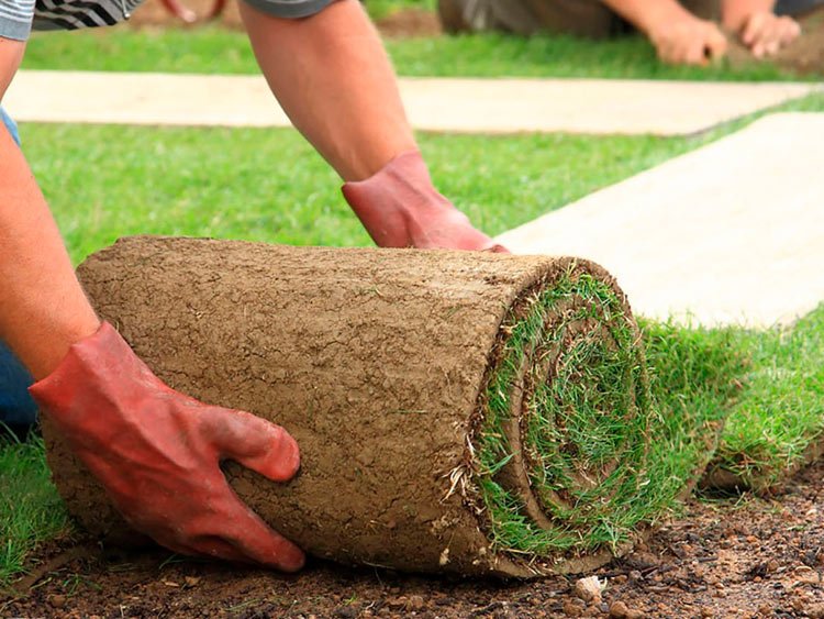 Работы при укладке рулонного газона: